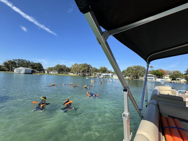 Manatee tours last approximately 3 hours from when you arrive to when we’re back at the dock. Most times, we try to actually have you in the water approximately an hour to an hour and a half. The actual amount of time spent in the water will vary depending upon the tour you select, the weather, tides that day, and what kind of mood the manatees are in that day.